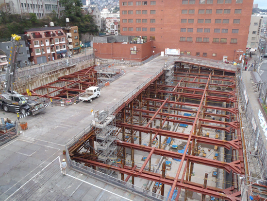 地下外周の擁壁の鉄筋組立を行ないコンクリートを打設しています。