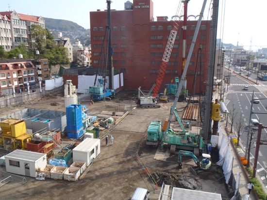 SMW(地中連続山留壁)工事を引き続き行っています。